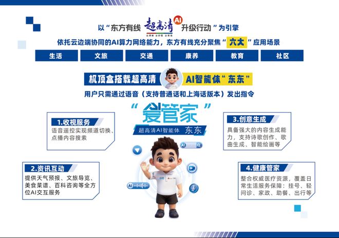 目前,该平台已随东方有线超高清AI升级行动全面落地,成功覆盖上海超80万有线电视终端。依托云边端协同的AI算力网络,“东东”正持续深耕生活、文旅、交通、康养、教育、社区六大核心应用场景,以四大核心服务精准匹配全家庭多元需求,为用户带来更具针对性、更优质的智能生活体验。后续,智慧广电网络安全生态创新研究国家广播电视总局实验室还将持续收集用户真实使用反馈,不断迭代优化平台功能与服务,推动AI技术在家庭场景的应用深度升级。